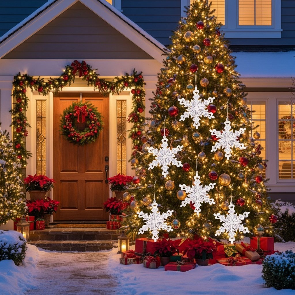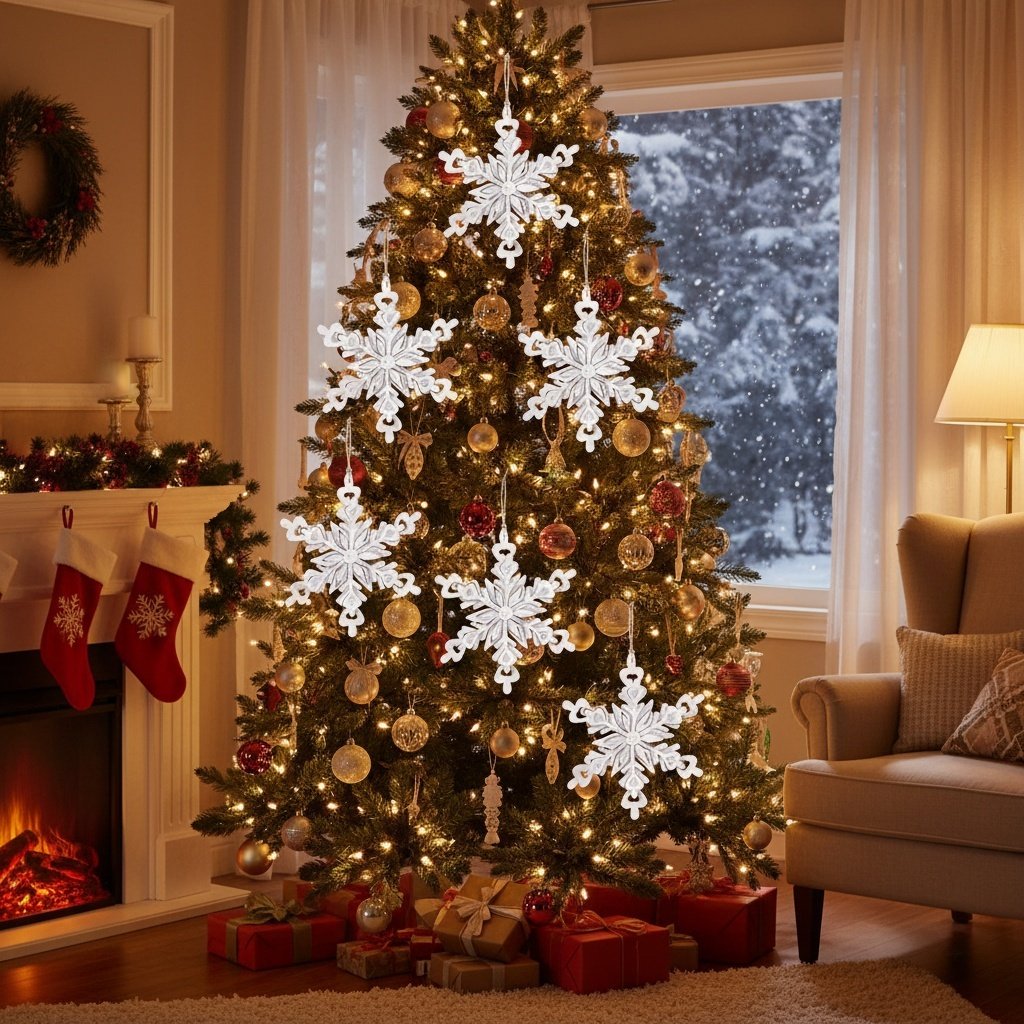 Versatile Holiday Decor: Beyond trees use for garlands, door swags, or gift accents. Timeless snowflake theme complements any Christmas or winter party setup.