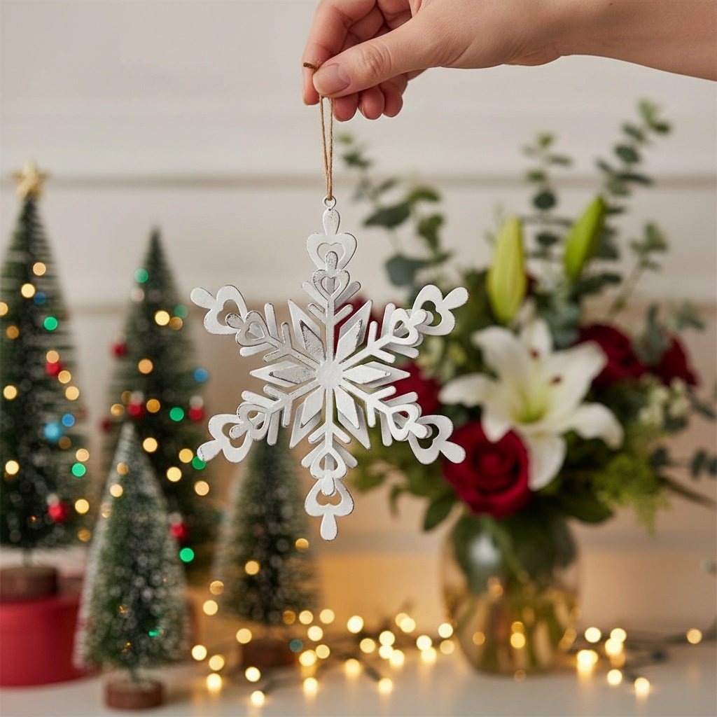 Elegant Snowflake Design: Intricate iron snowflakes add timeless winter charm to your tree. Delicate details create a picturesque wonderland ambiance, instantly elevating festive decor.