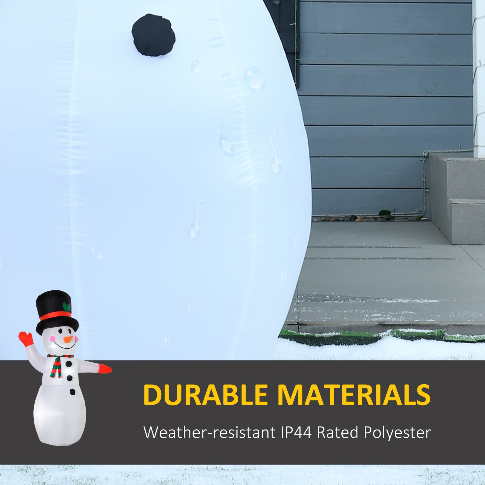 Be the envy of the neighborhood with this super fun (and super jolly) Snowman display. Since the holiday season is when things really come alive, the LED lights in this inflatable will dazzle the neighbors and help keep your yard lit. Kids, adults, neighbors, and carolers are sure to stop and marvel at this inflatable Snowman display (and isn’t showing up your neighbors what you’re really after here?). Features: – Snowman inflatable brings a cohesive Christmas display together – LED lights create a jolly, magical, and eye-catching effect – Deflates for easy storage (when you’re not dazzling your neighbors) – Includes five ground stakes, three drawstrings, and a sandbag to keep it anchored on windy nights – Certified IP44 polyester cloth is suited for indoor and outdoor use Specification: – Primary Color: White, Black – Type: Inflatable Christmas Snowman – Material: Polyester Cloth – Overall Dimensions: 66.25″ L x 31.5″ W x 94.5″ H – Input Voltage: 120 V / 60 Hz – Output Voltage: DC 12 V / 1 A – Certifications: IP44 – Item Label: 844-010 NOTE: Ensure the air blower is always connected to a power source to keep the Snowman inflated NOTE: Do not use the inflatable in heavy rain, snow, or wind. Package Includes: – 1 x Internal Fan (0.8 A) – 3 x Tether Ropes – 5 x Ground Stakes – 1 x Sandbag Create the ultimate festive Christmas display in your yard this holiday season with a HOMCOM six-foot tall inflatable featuring three cute penguins building a snowman. Designed with swirling, twirling color lights inside to project an impressive nighttime glow, this holiday decor will create a festive focal point. Self-inflating in minutes, this display plugs into any standard outlet allowing for a super simple set-up. Features: – Six-foot-tall holiday inflatable display with three cute penguins building a festive winter snowman – Four LEDs and a swirling multicolor light create an impressive nighttime glow – Self-inflates in minutes when plugged into any standard electrical outlet – Made from weather-resistant, quality polyester cloth material – Includes five stakes, three drawstrings and a sandbag to keep it anchored on windy nights Specification: – Color: Multicolor – Material: Polyester Fabric – Overall Dimensions: 55″ W x 27.5″ D x 70.75″ H – Power Cord Length: 10′ L – Rated Voltage: 220-240 V, 12 V / 1.25 A – Certification: IP44, UL NOTE 1. Ensure air blower is always connected to keep decoration inflated 2. Please don’t place it in heavy rain or snow. Package Includes: 1x 6′ Inflatable 1 x Internal Fan 3 x Tether Ropes 5 x Ground Stakes 1 x Sandbag Create the ultimate festive Christmas display this holiday season with this inflatable Snowman from HOMCOM. The Christmas inflatable is made with IP44 rated polyester cloth, so it can withstand the rain and snow. Light up your yard with the included LED lights that create a pretty and electricity saving display. Say goodbye to displays that are a hassle to set up. This outdoor inflatable automatically inflates for easy set up. Bring holiday cheer to your neighborhood with this light up Snowman. Features: – Snowman inflatable creates a festive atmosphere – 4 B2 LED light and 1 IC control colorful lights create a vibrant effect and enhances visibility at night – Includes red, blue and green flashing lights – Automatically inflates after for easy set up – 2 ground stakes, 2 drawstrings, 1 internal fan and 1 sandbag for added stability – Easily deflates for easy storage – Weather-resistant polyester cloth, certification: IP44, suitable for indoor and outdoor use Specification: – Color: White – Type: Inflatable Snowman Decoration with Street Lamp – Material: Polyester Cloth – Overall Dimension: 64.5″W x 40.5″D x 94.5″H – Product Height: 8 ft – Power Cable Length: 6.6 ft – LED Light Power: 0.48W – Fan: DC 12V/0.8A – Input voltage: 100-120V/60HZ – Output voltage: DC 12V/ 1.25A – Certification: IP44 – Item Label: 844-375V80 NOTE 1. Please don’t place it outdoor in hard rain or snow! Package Includes: – 1 x Christmas Snowman – 6 x Ground Stakes – 2 x Drawstrings – 3 x Sandbags – 1 x Manual Be the envy of the neighborhood with this super fun (and super jolly) smiling snowman family with bird and birdhouse display. Since the holiday season is when things really come alive, the white LED lights in this holiday inflatable will most definitely dazzle the neighbors and help keep your yard super lit. Kids, adults, neighbors, and carolers, are sure to stop and marvel at this inflatable snowman family display. Features: – Smiling snowman family with bird and birdhouse inflatable brings a cohesive Christmas display together – White LED lights create a jolly, magical, and eye-catching effect – Deflates for easy storage (when you’re not dazzling your neighbors) – Includes six stakes, two drawstrings and a sandbag to keep it anchored on windy nights – Certified IP44 polyester cloth is suited for indoor and outdoor use – When you’re ready to deflate, this storage bag will allow you to put the inflatable safely away for next year Specification: – Primary Color: White – Type: Inflatable Christmas Snowman Family with Bird and Birdhouse – Material: Polyester Cloth – Overall Dimensions: 86.5″ W x 35.5″ D x 82.75″ H – Power Cable Length: 9.8 ft – Sandbag Weight: 0.44 lb. – LED Light Count: 6 – LED Light Power: 0.5 W – Fan: 14.4 W/1.2 A – Input Voltage: 120 V/60 Hz – Output Voltage: 12 V/1500 MA – Certifications: UL, ETL, CSA, CEC – Item Label: 844-607V80MX NOTE: Ensure the air blower is always connected to a power source to keep the Snowman inflated NOTE: Do not use the inflatable outside in heavy rain, snow, or wind. Package Includes: – 1 x Inflatable Christmas Decoration – 6 x Ground Stake – 2 x Drawstring – 1 x Sandbag – 1 x Internal Fan – 1 x Manual Be the envy of the neighborhood with 