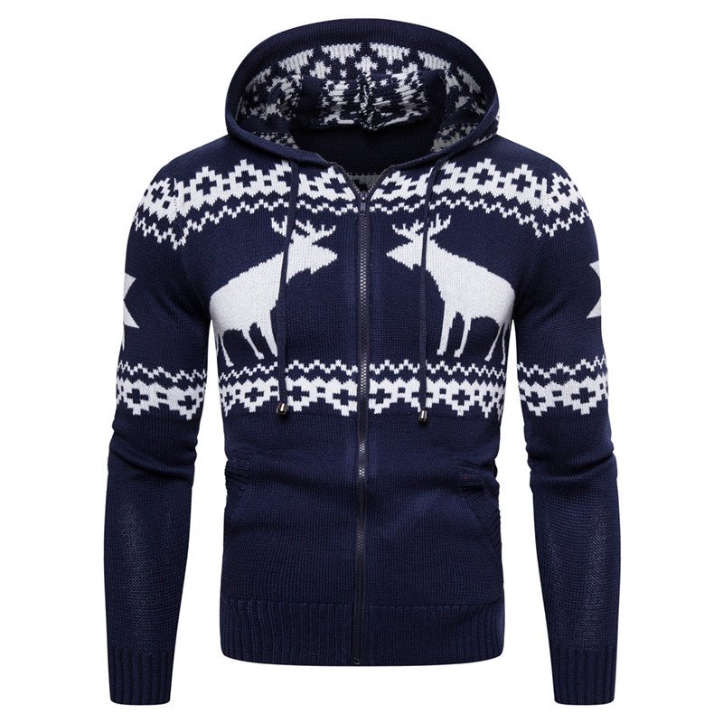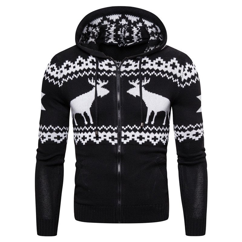 Men’s Zipper Hooded Fawn Christmas Sweater